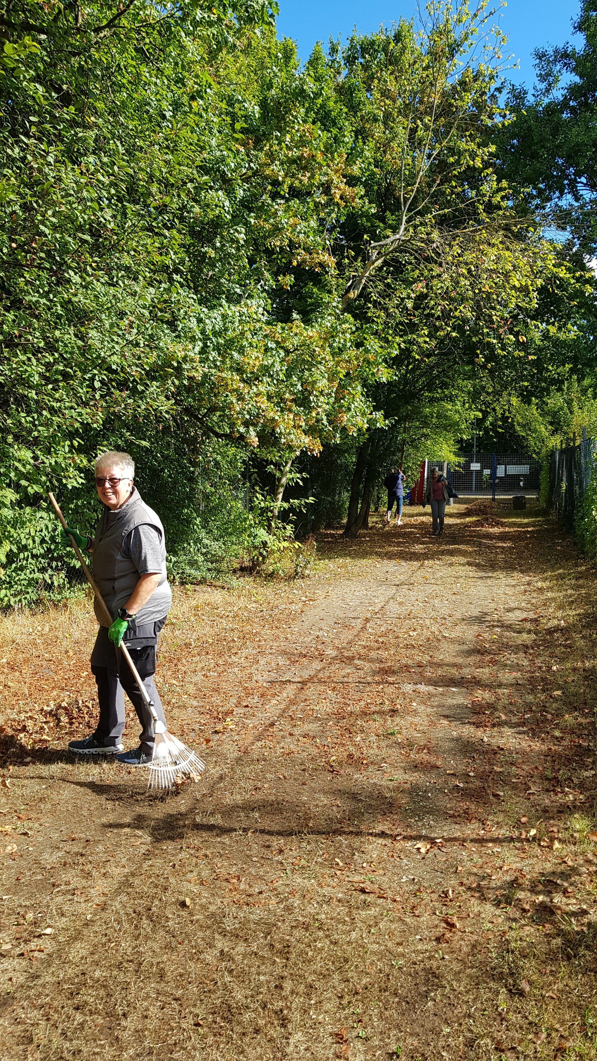 Zur Vorbereitung der Prüfung wurde noch einmal eifrig geharkt, gezupft, gemäht, geputzt. Wer hätte gedacht, dass wir im August mal derartige Mengen vertrocknetes Laub beseitigen müssen? Danach gab es ein wie immer leckeres Frühstück. Nun ist alles vorbereitet und der Prüfung steht nichts mehr im Weg. Ein herzlicher Dank an alle Helferinnen und Helfern!