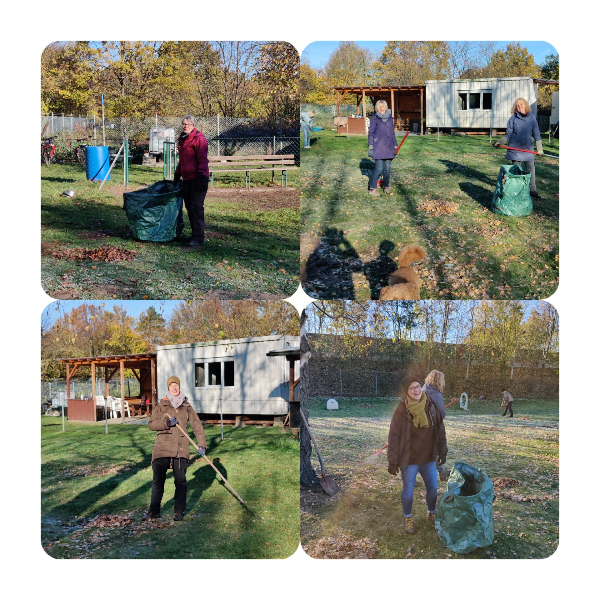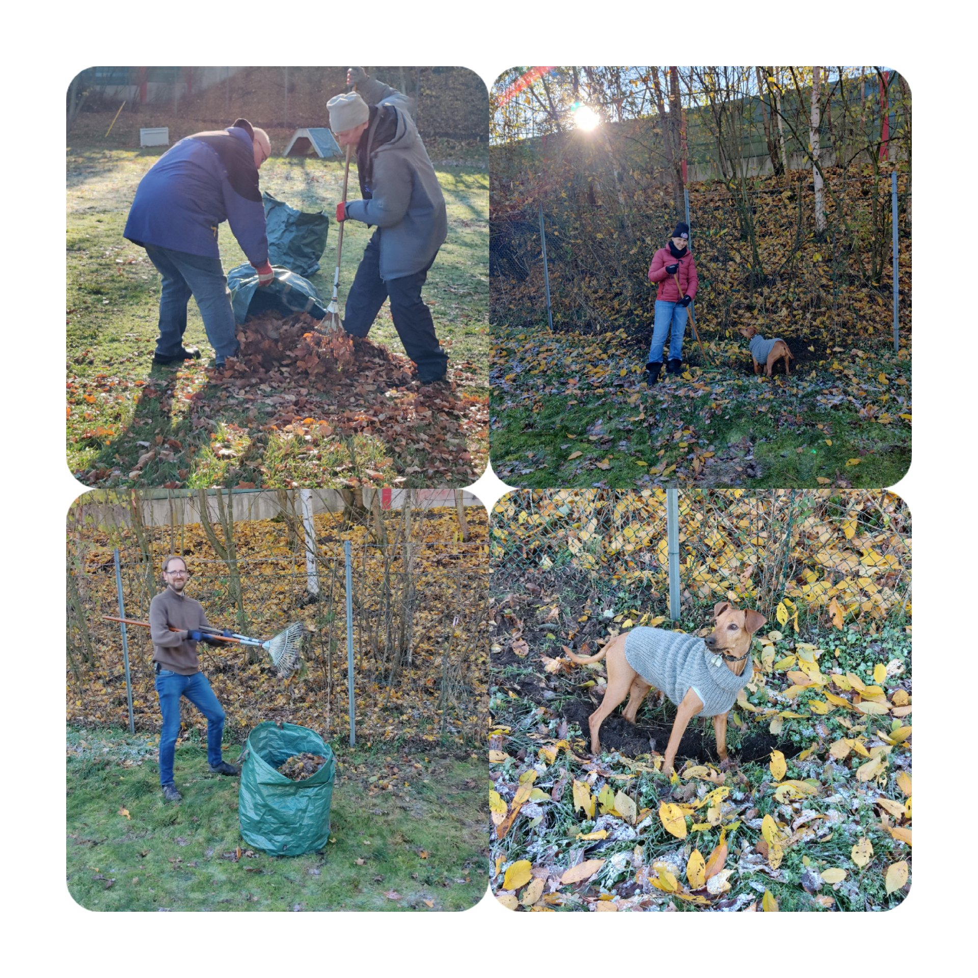 Der Wettergott war gnädig gestimmt und hat uns herbstkühles, aber trockenes Wetter beschert. Nachdem zunächst ein kompletter Bauwagen statt mit Pferdestärken von Menschenhand gedreht wurde, Platten nahezu perfekt gelegt und der Treppenzugang "gerichtet" wurde, konnte endlich "Dies und Das" aus dem Vereinsheim dorthin verbracht werden. Hierfür waren viele Menschen lange unterwegs und konnten so auch ohne Hunderunde Schritte sammeln! Der Sitzrasenmäher und Petra haben sich langsam aneinander gewöhnt und zogen dann routiniert ihre Bahnen, die "Plattenprofis" führten ihre Arbeiten munter an anderer Stelle weiter und manch einer wollte gar ganz hoch hinaus. Dank Gabi konnten wir uns mittags mit einem köstlichen 2. Frühstück stärken, bevor wir am Nachmittag müde, aber glücklich nach Hause fuhren. Nicht nur unser Trainingsplatz, sondern insbesondere auch unser Vereinsheim erstrahlt nun in neuem Glanz! Danke sehr an all die helfenden Hände und hoffentlich bis bald!