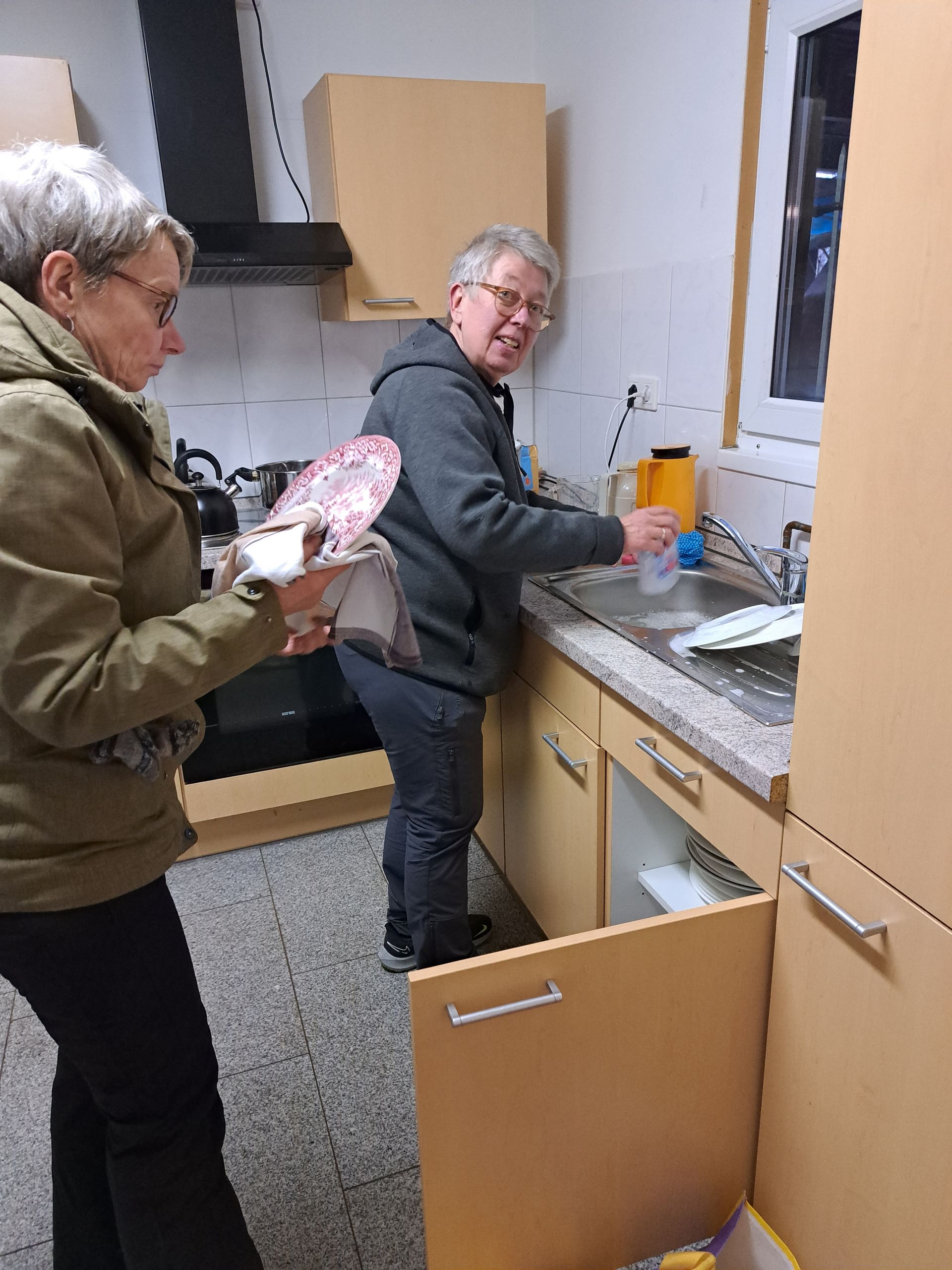 Der Wettergott war gnädig gestimmt und hat uns herbstkühles, aber trockenes Wetter beschert. Nachdem zunächst ein kompletter Bauwagen statt mit Pferdestärken von Menschenhand gedreht wurde, Platten nahezu perfekt gelegt und der Treppenzugang "gerichtet" wurde, konnte endlich "Dies und Das" aus dem Vereinsheim dorthin verbracht werden. Hierfür waren viele Menschen lange unterwegs und konnten so auch ohne Hunderunde Schritte sammeln! Der Sitzrasenmäher und Petra haben sich langsam aneinander gewöhnt und zogen dann routiniert ihre Bahnen, die "Plattenprofis" führten ihre Arbeiten munter an anderer Stelle weiter und manch einer wollte gar ganz hoch hinaus. Dank Gabi konnten wir uns mittags mit einem köstlichen 2. Frühstück stärken, bevor wir am Nachmittag müde, aber glücklich nach Hause fuhren. Nicht nur unser Trainingsplatz, sondern insbesondere auch unser Vereinsheim erstrahlt nun in neuem Glanz! Danke sehr an all die helfenden Hände und hoffentlich bis bald!
