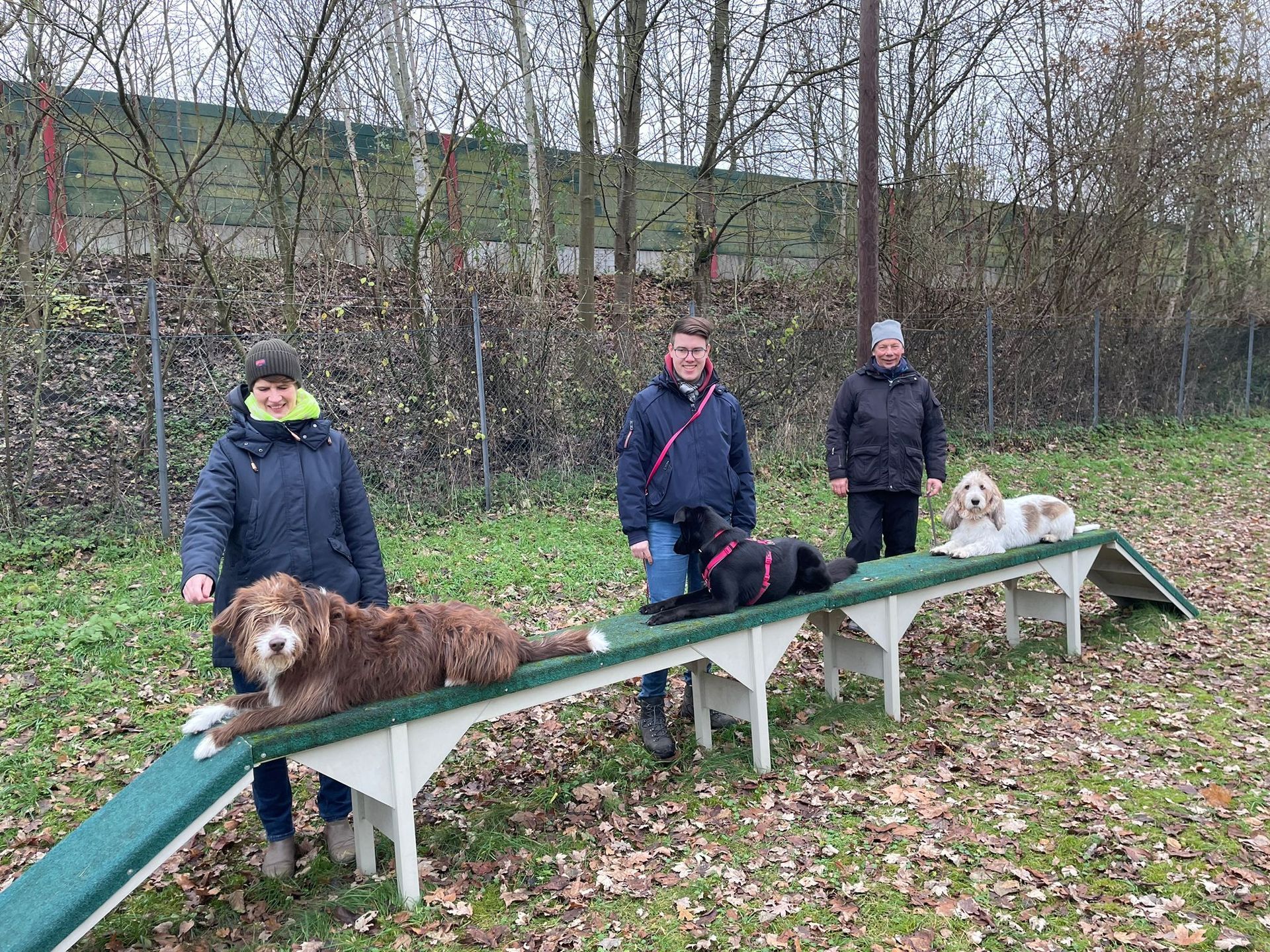 Heute hat der Weihnachtsmann - oder war es doch die Weihnachtsfrau Birgit? - die Menschen und Hunde bei unserer Weihnachtsfeier mit einem lustigen Dreikampf erfreut: die Stationen 'Alles im Eimer', ',Rechnen in Bewegung' und 'Wasserstandsmeldung' mussten absolviert werden. Dabei waren Geschicklichkeit, Kopfrechnen und Mensch-Hund-Miteinander gefragt. Alle haben das super gemacht, nur das Rechnen müssen die Menschen noch üben ;-) Danach gab es bei einem netten Beisammensitzen ein leckeres Buffet mit warmen Getränken und schönen Weihnachtsgeschichten für die Seele. Nun verabschieden wir uns in die Platz-Winterpause. Bis zum nächsten Jahr!