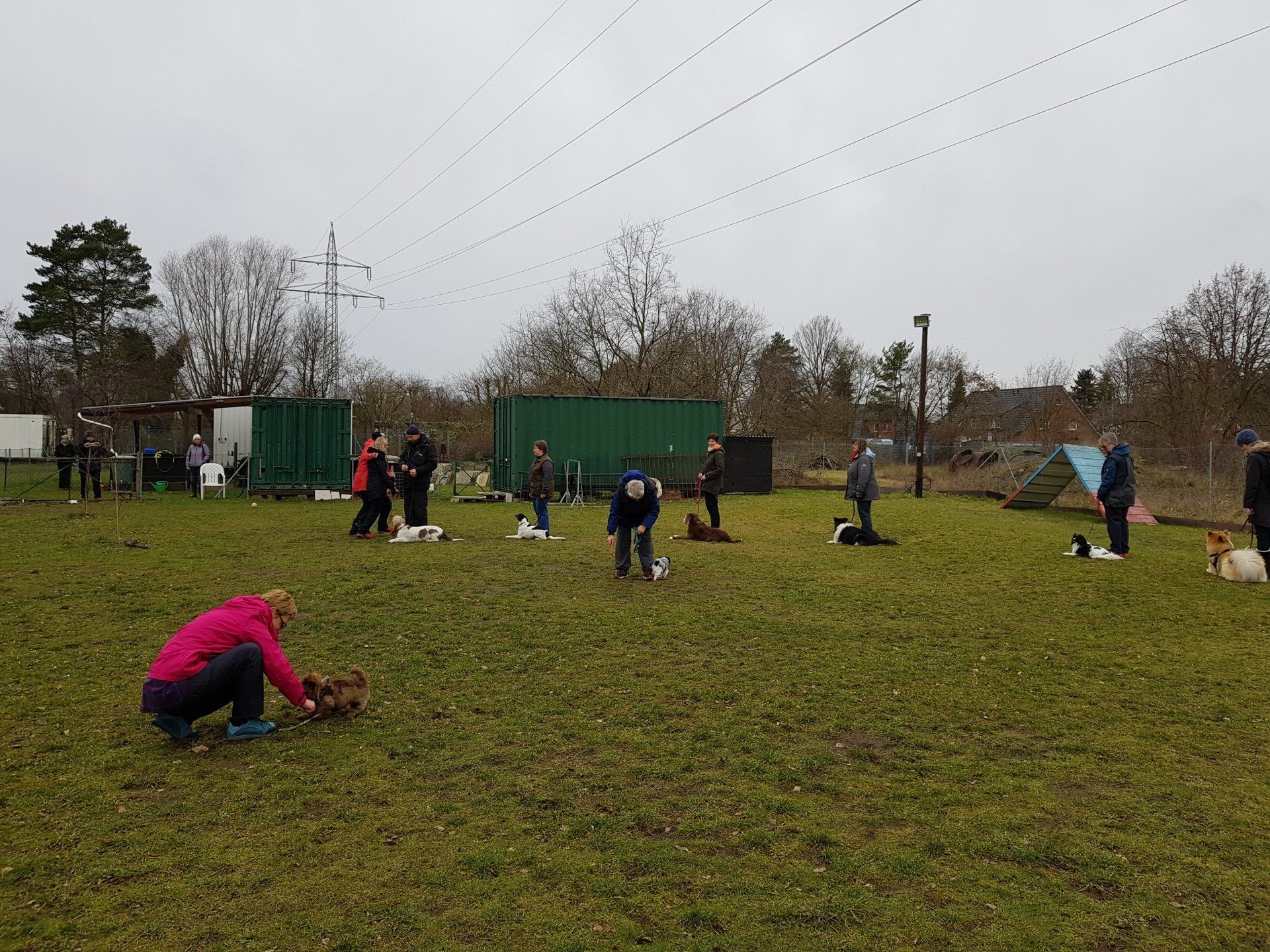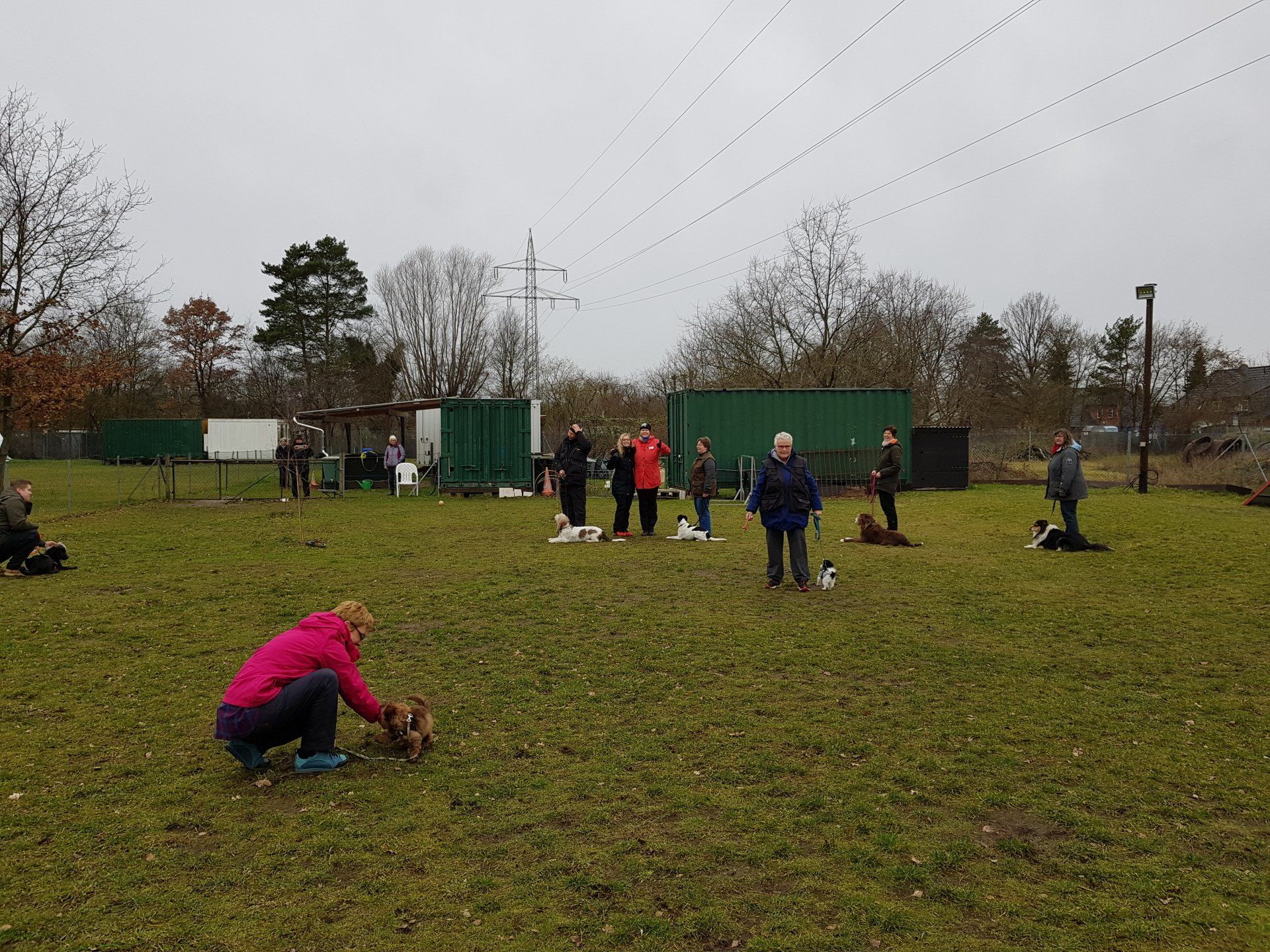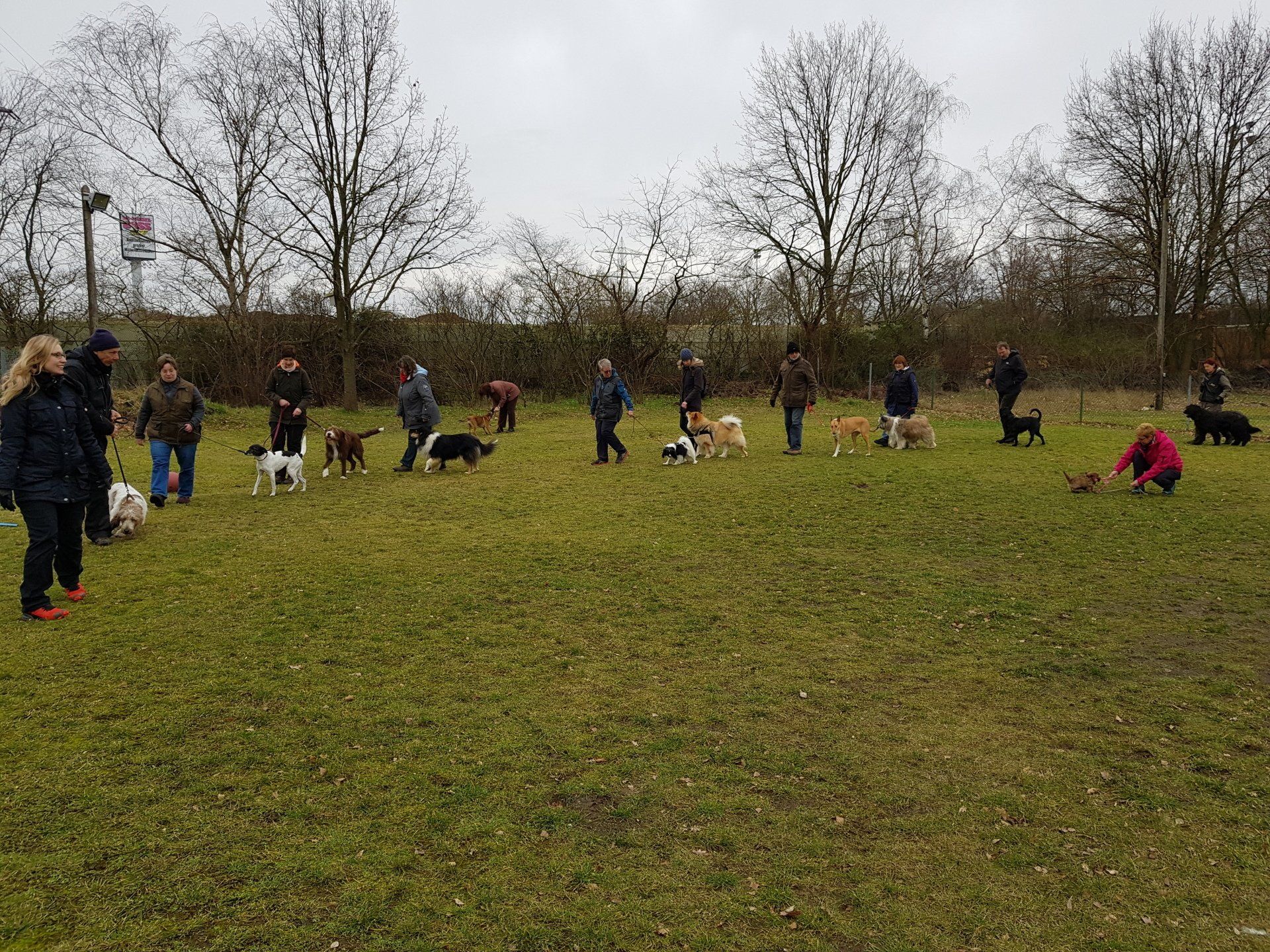 Im Februar gab es eine kurze gemeinsame Übungssequenz der ganz jungen sowie der ganz erfahrenen Hunde: die BH Vorbereitungsgruppe hat die Welpenstunde besucht. Für beide Seiten aufregend: auf der einen Seite die jungen Verspielten, die sich plötzlich den "Großen" gegenüber sahen und erstmal nicht wussten: wer ist das denn? Und auf der anderen Seite die Erfahrenen, die natürlich zeigen sollten und wollten, dass auch die Jungspunte ihre Aufmerksamkeit nicht durcheinander bringen.
