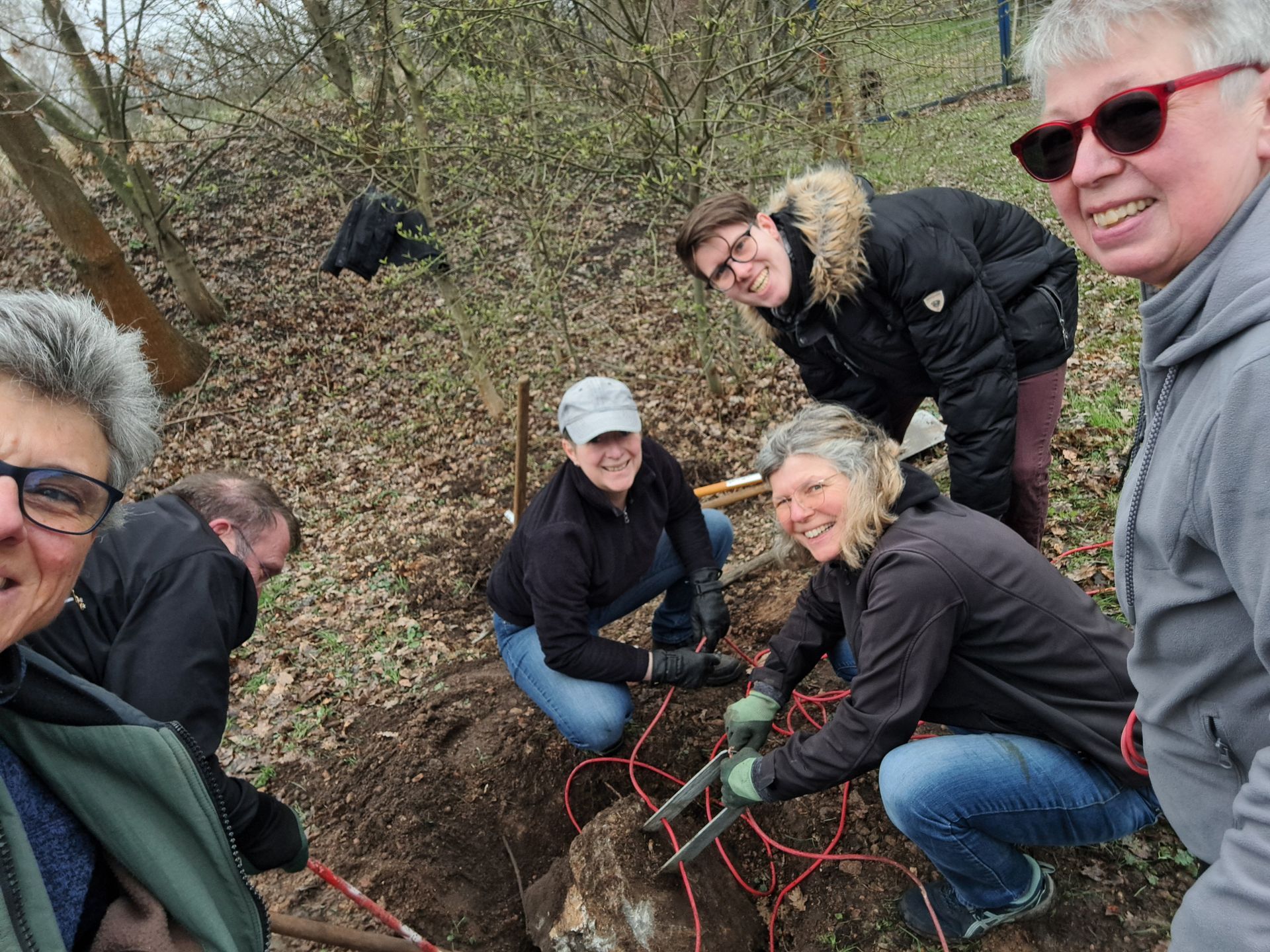 Bei bestem Wetter hat sich ein halbes Dutzend heute nach dem Training ganz tief nach unten begeben. Der Untergrund für ein kleines Gerätehaus wurde geebnet (soweit die zahlreichen Wurzeln dieses zuließen) und es wurden Platten verlegt. Mit Würstchen und Käse vom Grill fand der Tag genau den richtigen Abschluss. Danke!