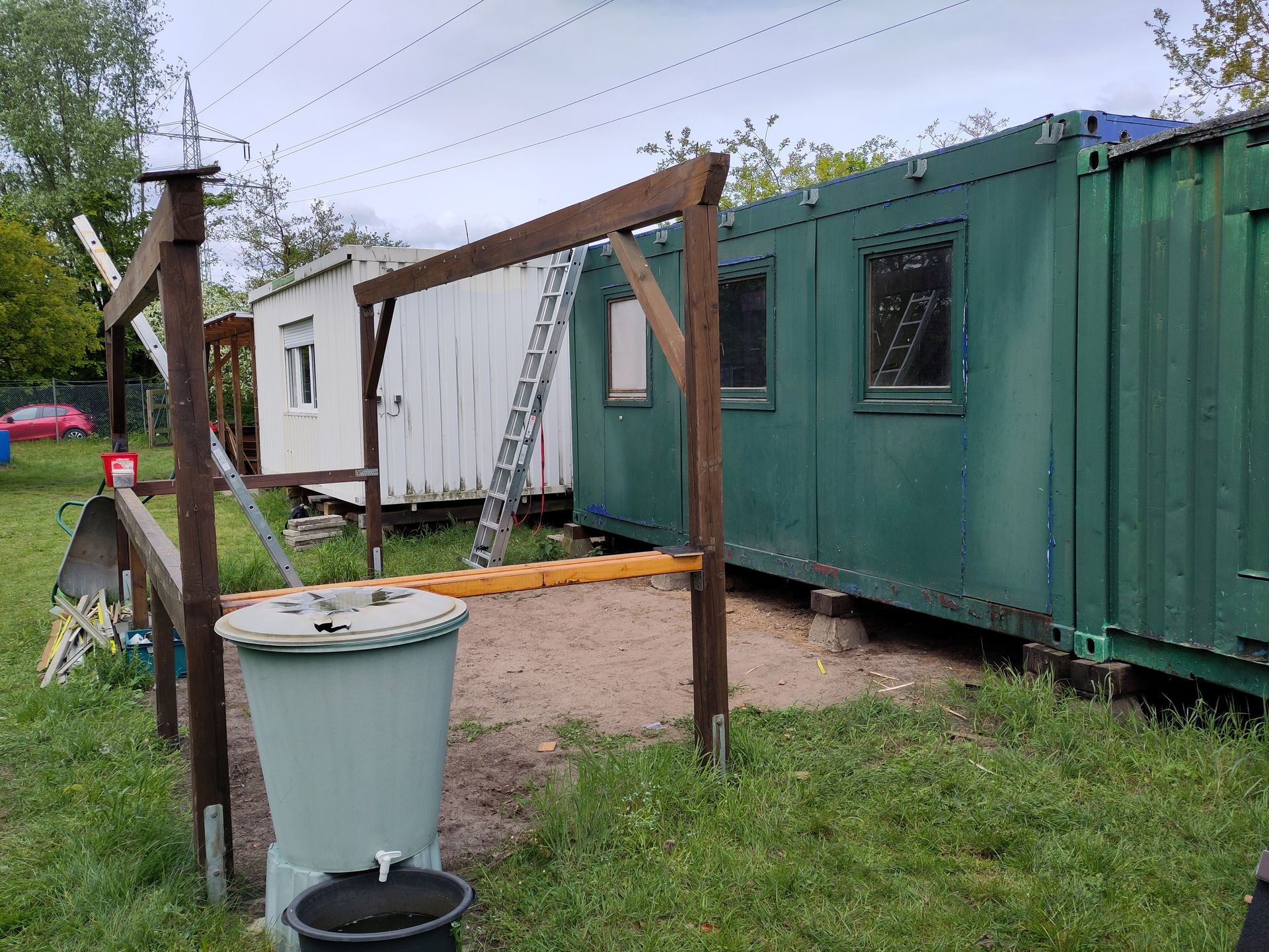 Bei bestem Wetter hat sich ein halbes Dutzend heute nach dem Training ganz tief nach unten begeben. Der Untergrund für ein kleines Gerätehaus wurde geebnet (soweit die zahlreichen Wurzeln dieses zuließen) und es wurden Platten verlegt. Mit Würstchen und Käse vom Grill fand der Tag genau den richtigen Abschluss. Danke!