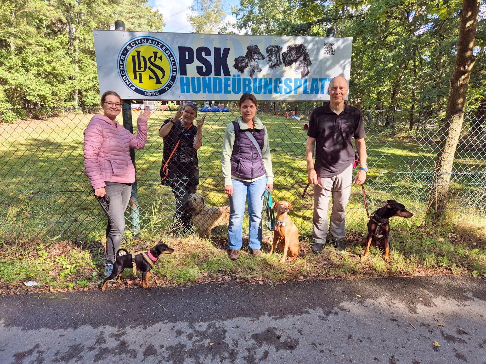 Am 21.06. war es wieder so weit: Wir haben die Sonnenhüte aufgesetzt, die Hunde geschnappt und sind zum alljährlichen Sommerfest der PSK Ortsgruppe Hannover zusammengekommen. Der Wettergott hatte offensichtlich gute Laune – strahlender Sonnenschein und Temperaturen, bei denen man auch mal überlegt, ob der Hund oder man selbst zuerst ins Planschbecken darf. Nach einer kurzen, herzlichen Begrüßung durch den Vorstand wurde es spannend: Birgit griff in ihren geheimnisvollen Beutel und verteilte mysteriöse Zettel – wer jetzt an eine Zaubershow dachte, lag nicht ganz falsch. Die Auflösung folgte prompt: In drei bunt gemischten Gruppen ging es auf zur Hundeolympiade! Die Disziplinen hatten es in sich: Beim „Pfad der Versuchung“ wurde so mancher Vierbeiner zur inneren Einkehr gezwungen – oder eben zur Gabel mit Leckerli. Auch ein Slalomparcours musste gemeistert werden, ebenso wie eine Sitzübung, die eher den Menschen ins Schwitzen brachte. Dazu gab es Kuscheltier-Apportieren (niedlichkeitsbedingtes Quietschen inklusive) und für die ganz gechillten Fellnasen eine entspannte Tour im Bollerwagen – Wellness für Wuff. Birgit hatte wirklich ganze Arbeit geleistet – die Übungen sorgten nicht nur für tierisch viel Spaß, sondern auch für einige herzhafte Lacher. Unsere Lachmuskeln kamen definitiv nicht zu kurz! Nach einem kleinen Spaziergang – die Sonne meinte es jetzt endgültig ernst – wurden wir schon vom unwiderstehlichen Duft des Grills empfangen. Bei leckerem Essen, kalten Getränken und netten Gesprächen ließen wir den Nachmittag entspannt ausklingen. Ach ja, da wollte uns eine defekte Wasserpumpe doch noch einen Strich durch die Rechnung gemacht – aber nix da! So schnell lassen wir uns nicht verjagen. Gute Alternativen wurden gefunden und inzwischen fließt das Wasser auch wieder. Das Fest wurde ein voller Erfolg. Schön, dass ihr alle da wart und diesen Tag mit uns gefeiert habt – auf unsere wunderbare PSK Ortsgruppe Hannover!