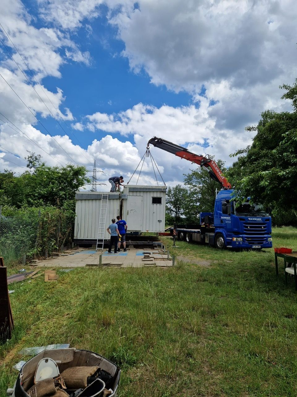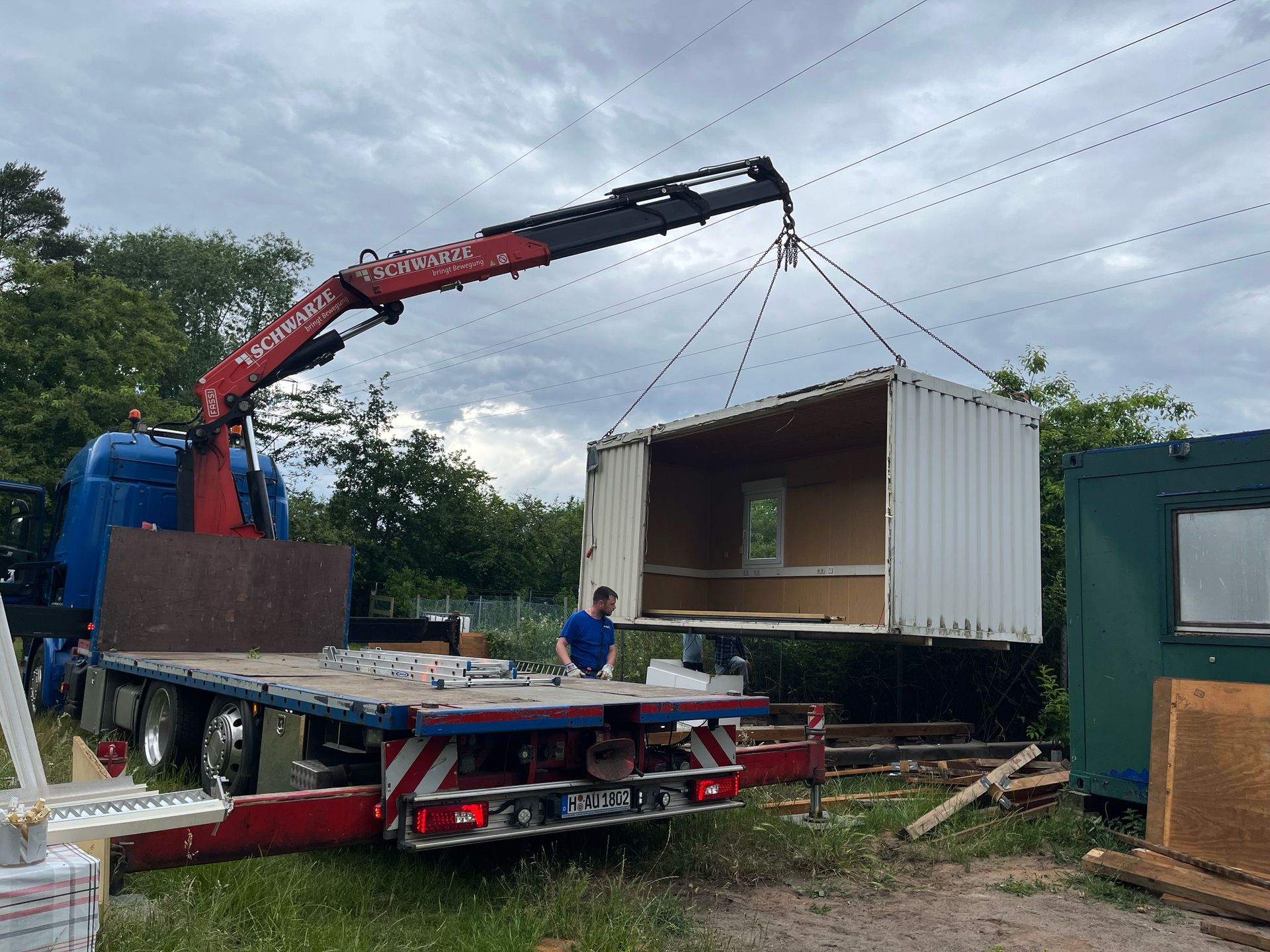 Nun ist er weg - der Vereinscontainer. Nach einem stressigen - da sehr kurzfristig nötigen - Abbau der Pergola-Gestellreste wurde letzte Woche der Vereinscontainer abtransportiert. Außerdem wurde erneut Umzugsgut nach Thönse transportiert.