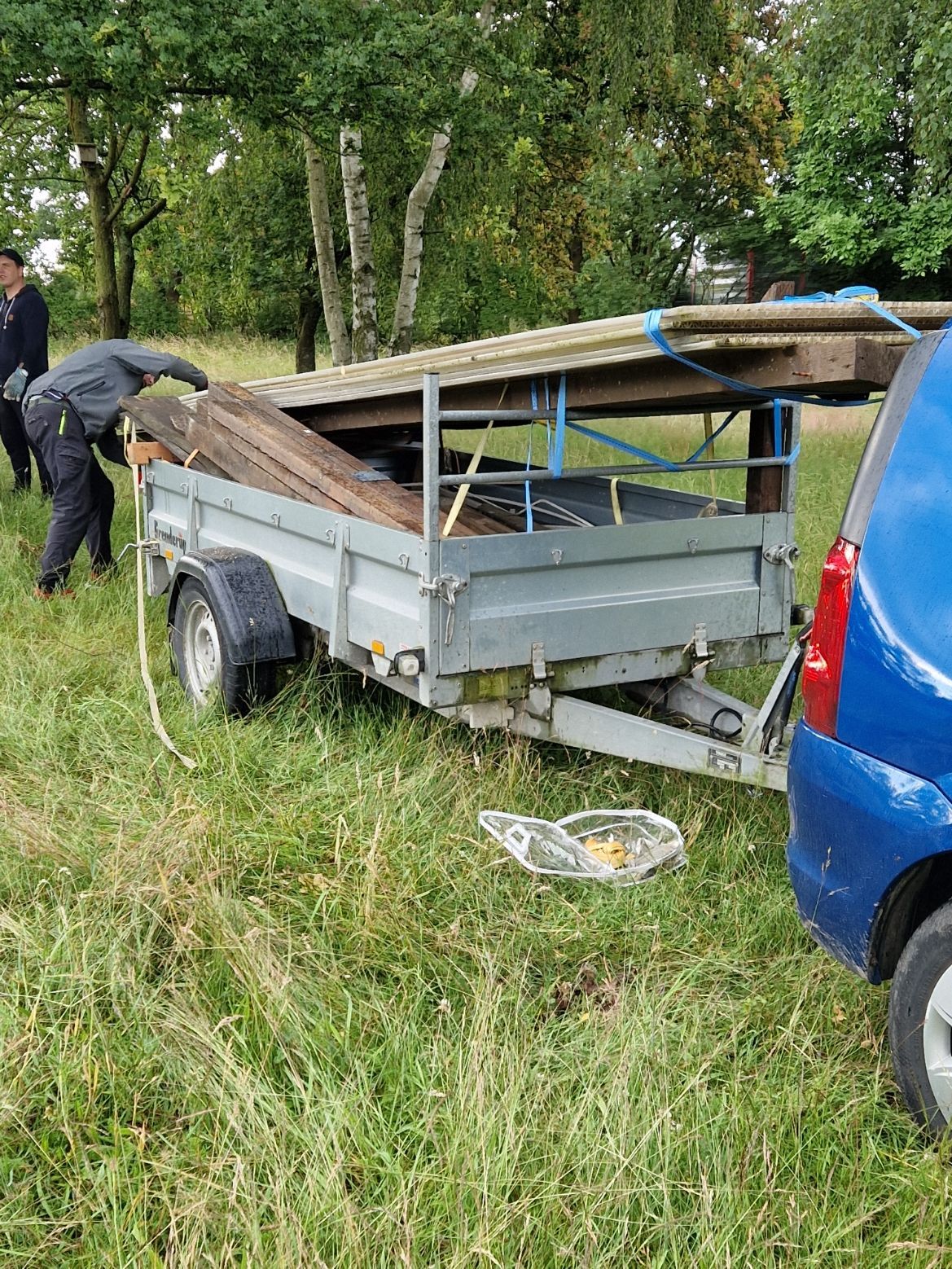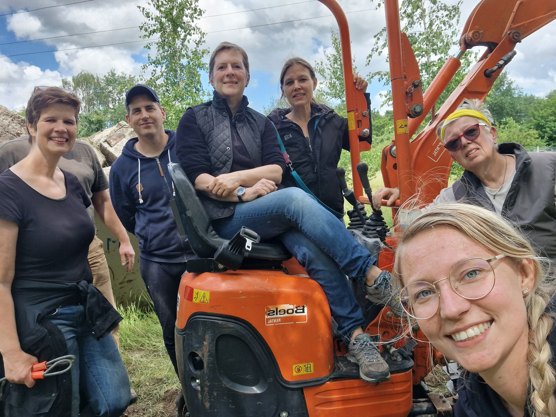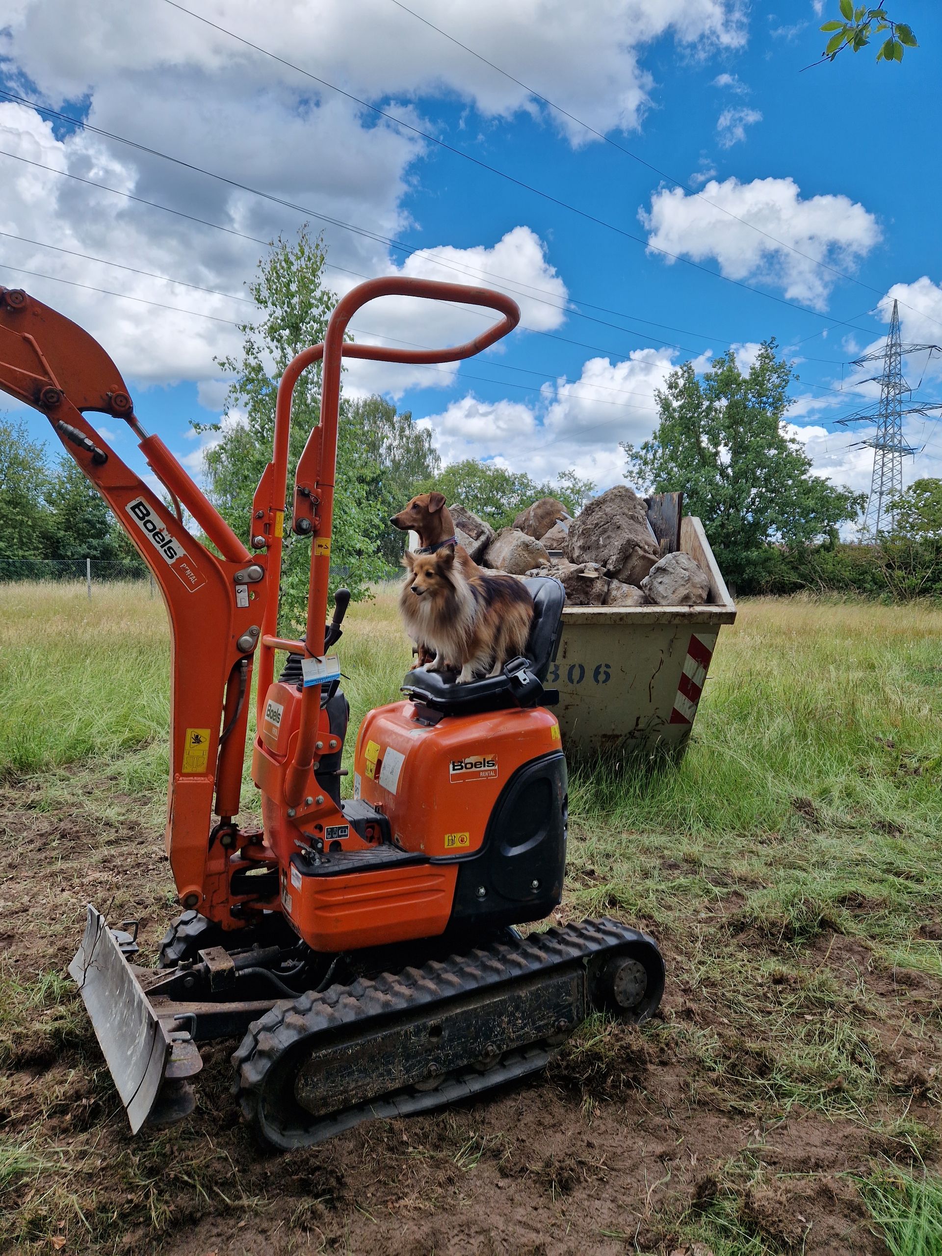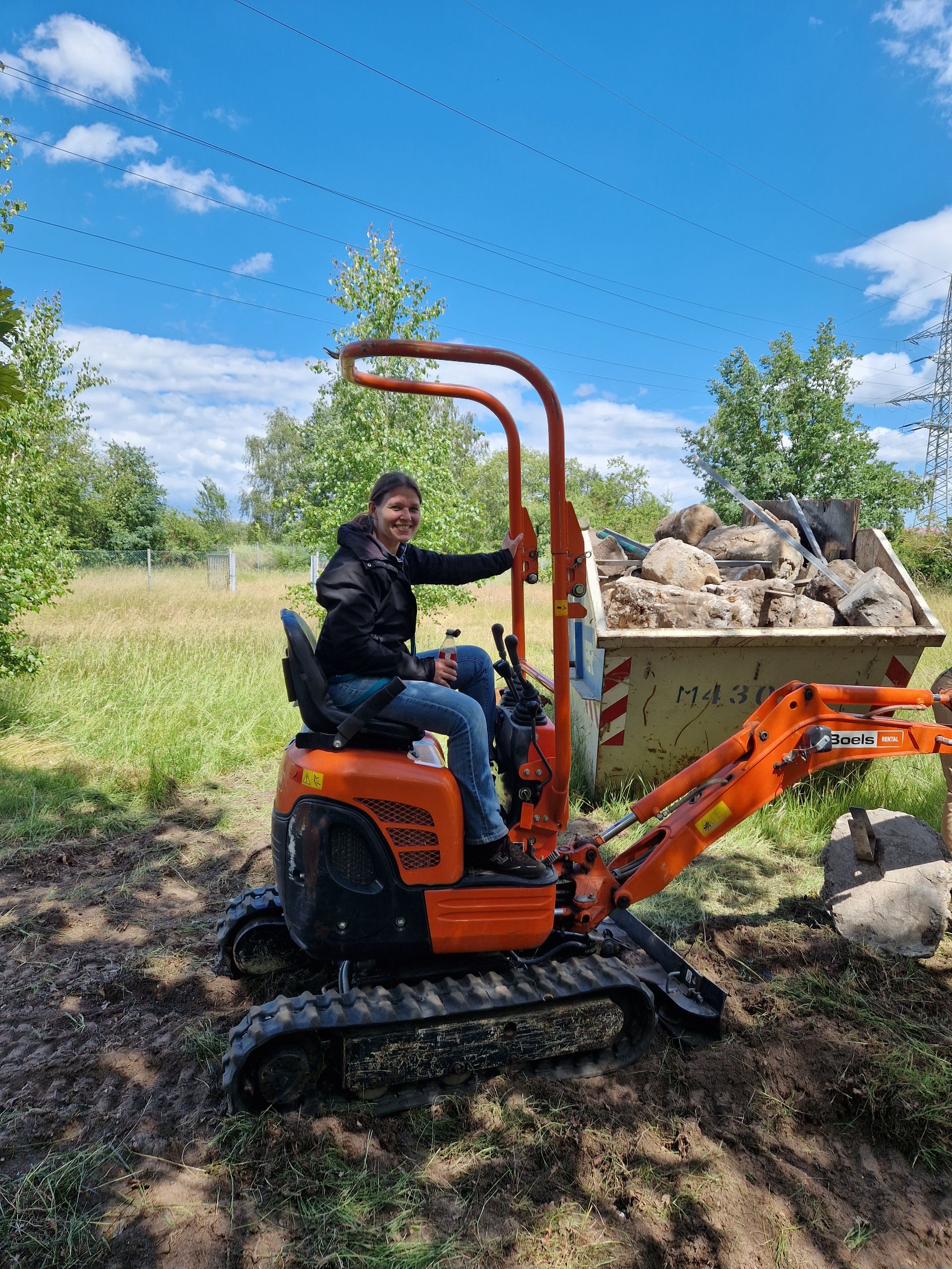 Der Wettergott war gnädig gestimmt und hat uns herbstkühles, aber trockenes Wetter beschert. Nachdem zunächst ein kompletter Bauwagen statt mit Pferdestärken von Menschenhand gedreht wurde, Platten nahezu perfekt gelegt und der Treppenzugang "gerichtet" wurde, konnte endlich "Dies und Das" aus dem Vereinsheim dorthin verbracht werden. Hierfür waren viele Menschen lange unterwegs und konnten so auch ohne Hunderunde Schritte sammeln! Der Sitzrasenmäher und Petra haben sich langsam aneinander gewöhnt und zogen dann routiniert ihre Bahnen, die "Plattenprofis" führten ihre Arbeiten munter an anderer Stelle weiter und manch einer wollte gar ganz hoch hinaus. Dank Gabi konnten wir uns mittags mit einem köstlichen 2. Frühstück stärken, bevor wir am Nachmittag müde, aber glücklich nach Hause fuhren. Nicht nur unser Trainingsplatz, sondern insbesondere auch unser Vereinsheim erstrahlt nun in neuem Glanz! Danke sehr an all die helfenden Hände und hoffentlich bis bald!