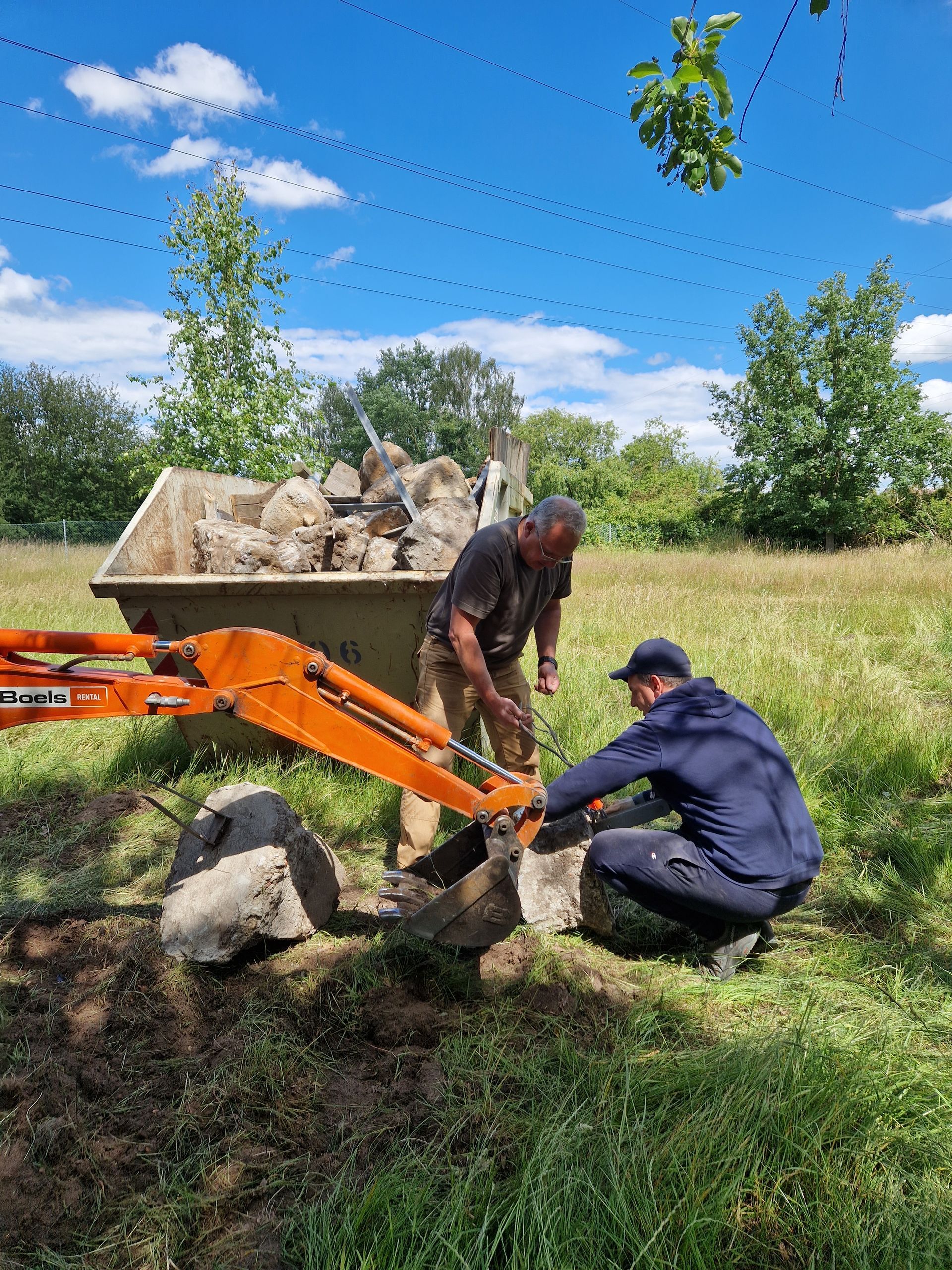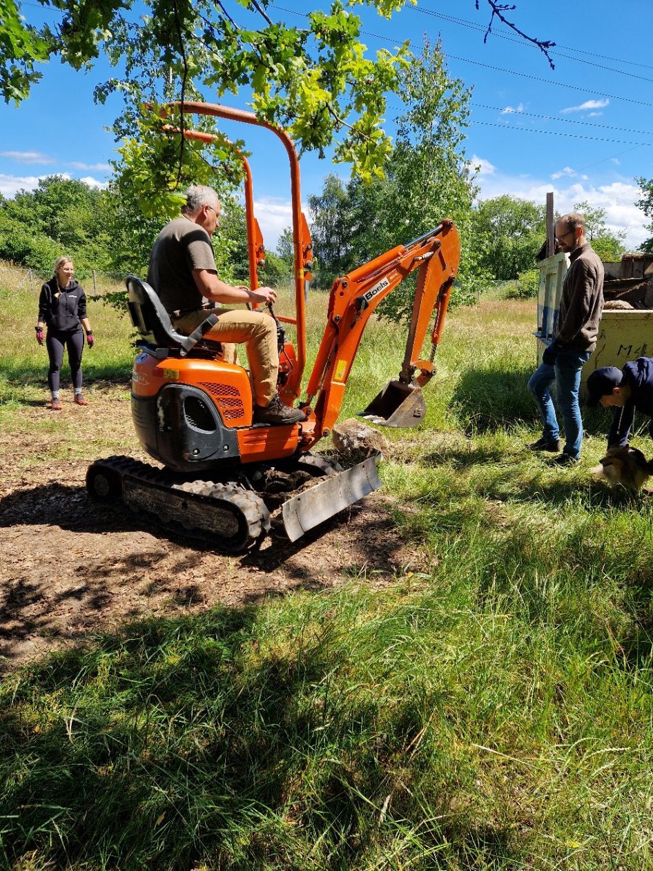 Bei bestem Wetter hat sich ein halbes Dutzend heute nach dem Training ganz tief nach unten begeben. Der Untergrund für ein kleines Gerätehaus wurde geebnet (soweit die zahlreichen Wurzeln dieses zuließen) und es wurden Platten verlegt. Mit Würstchen und Käse vom Grill fand der Tag genau den richtigen Abschluss. Danke!
