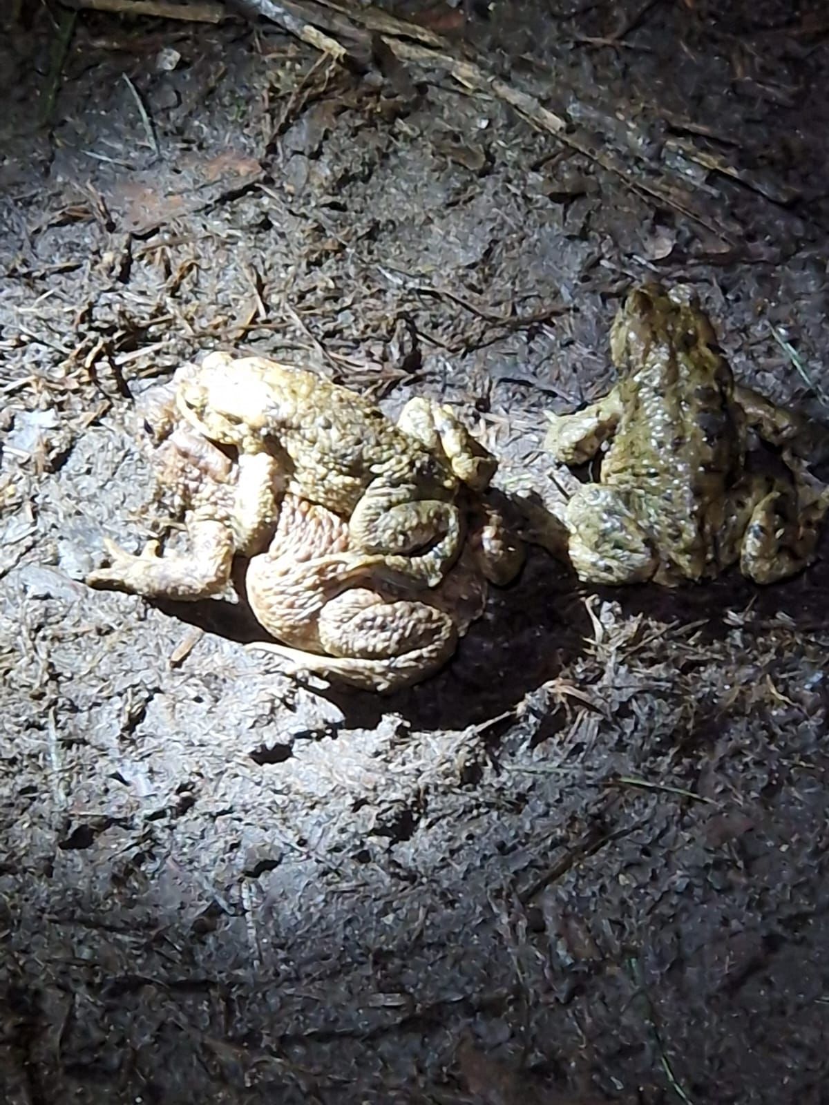 Achtung: Krötenwanderung! Die Hunde finden's spannend!