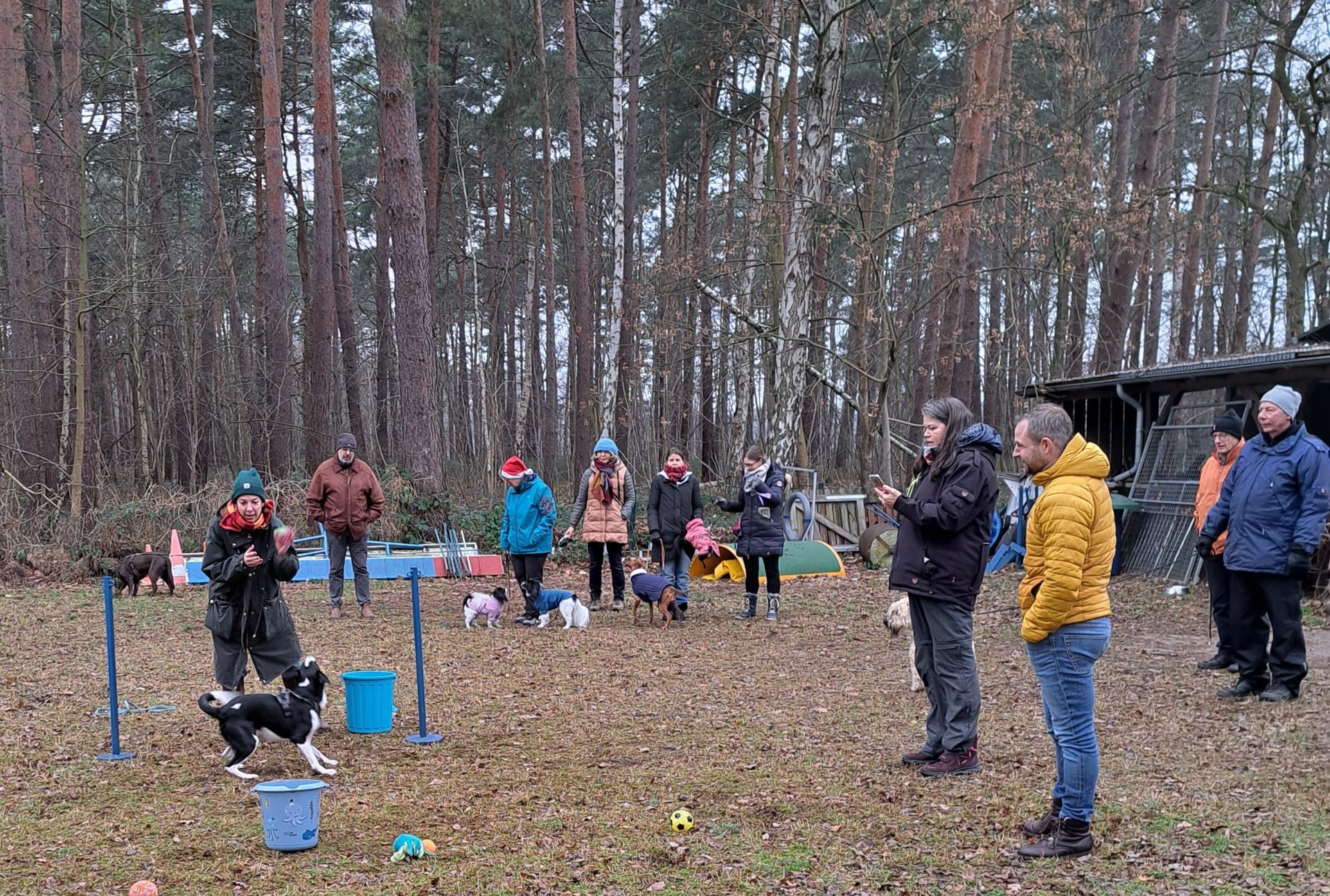 Heute hat der Weihnachtsmann - oder war es doch die Weihnachtsfrau Birgit? - die Menschen und Hunde bei unserer Weihnachtsfeier mit einem lustigen Dreikampf erfreut: die Stationen 'Alles im Eimer', ',Rechnen in Bewegung' und 'Wasserstandsmeldung' mussten absolviert werden. Dabei waren Geschicklichkeit, Kopfrechnen und Mensch-Hund-Miteinander gefragt. Alle haben das super gemacht, nur das Rechnen müssen die Menschen noch üben ;-)